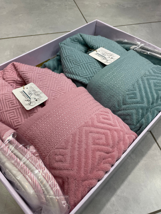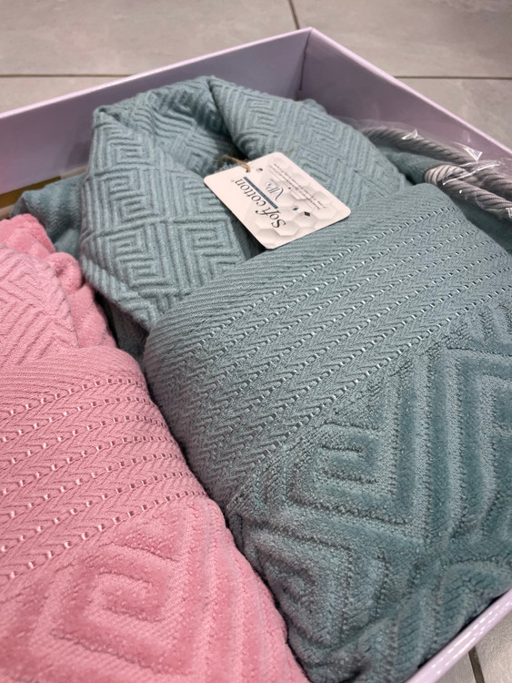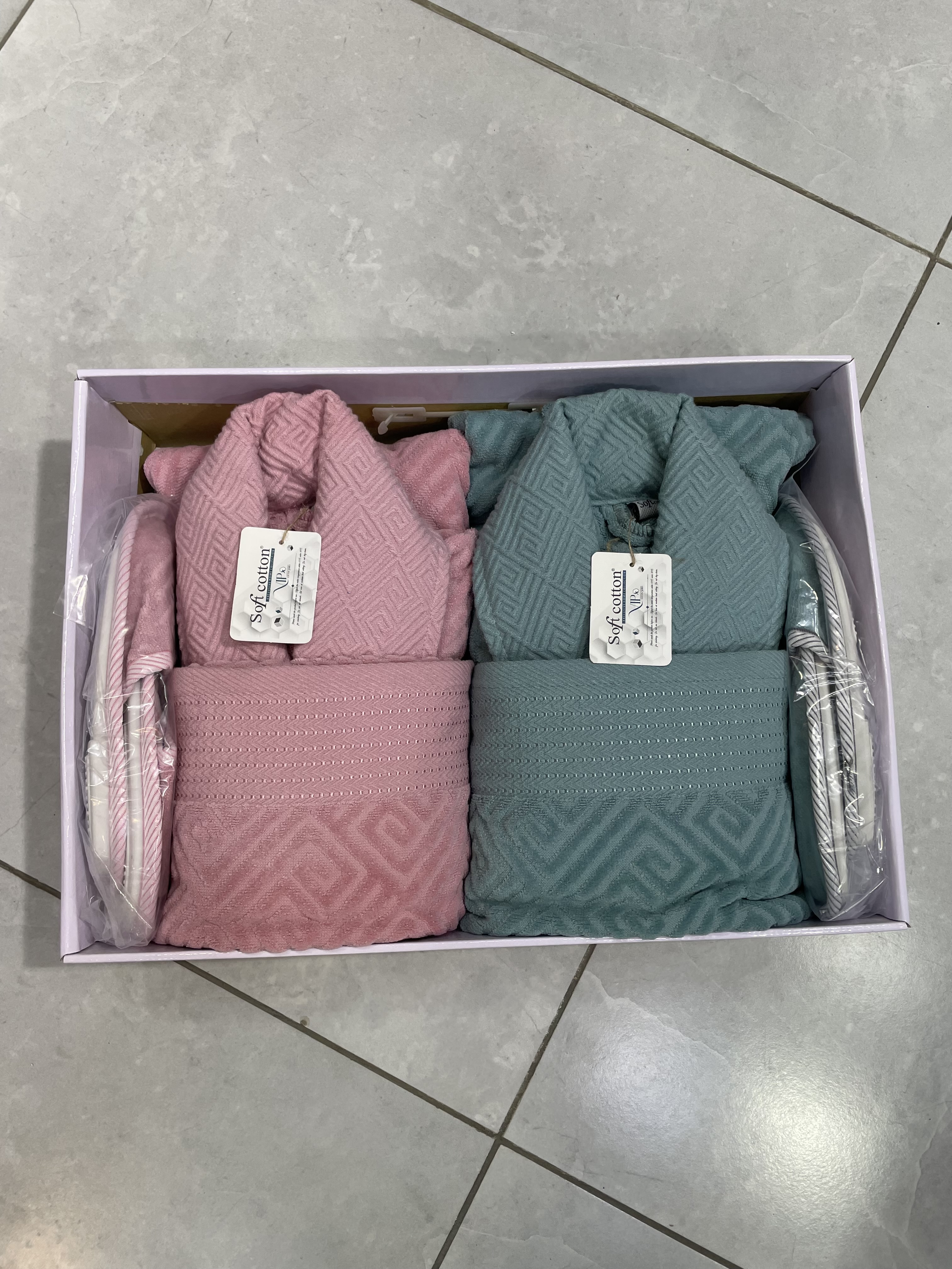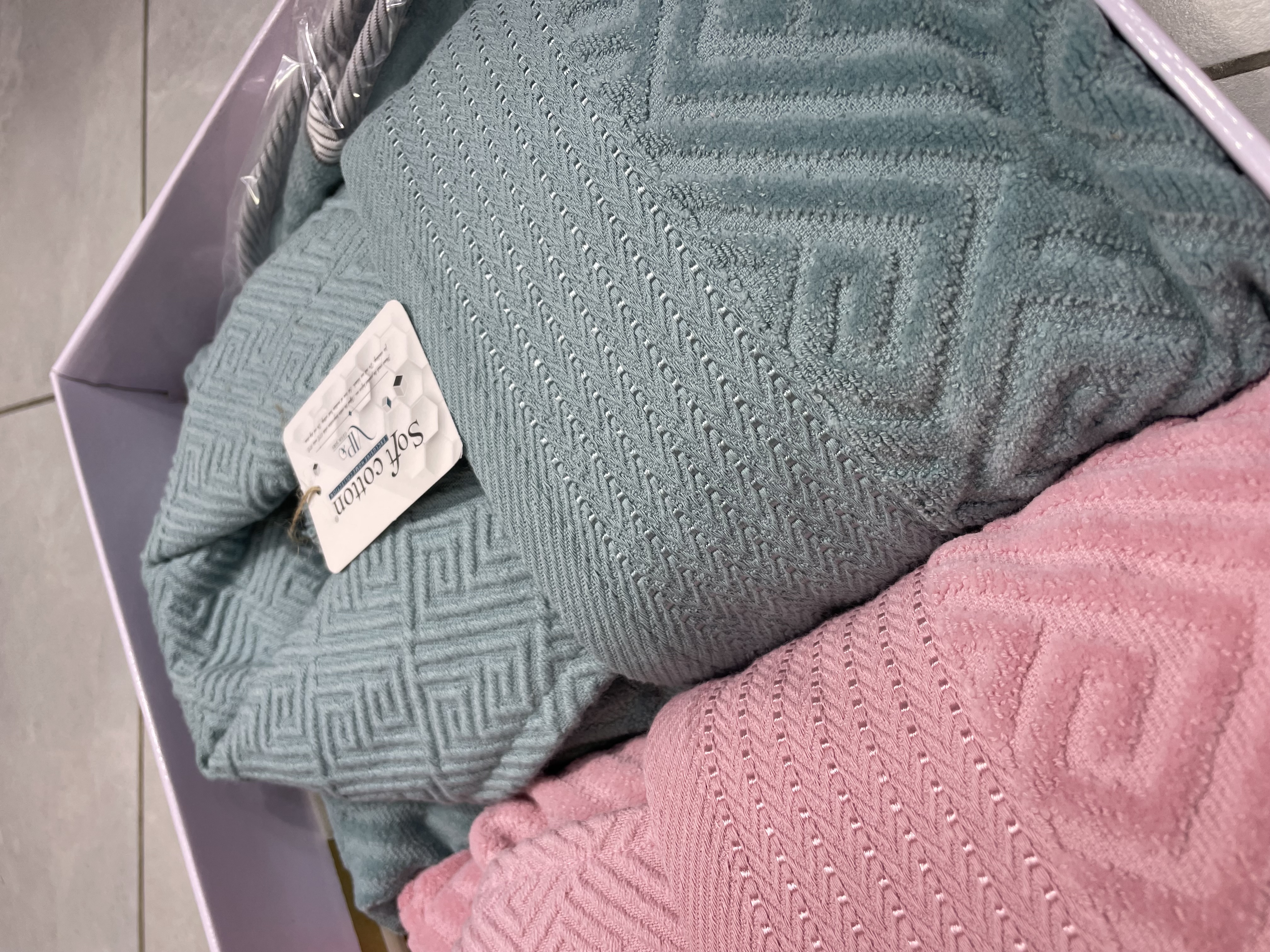 حوله تن پوش ست عروس وداماد۶تیکه دو رو ابگیر۱۰۰٪از برند سافت کتان